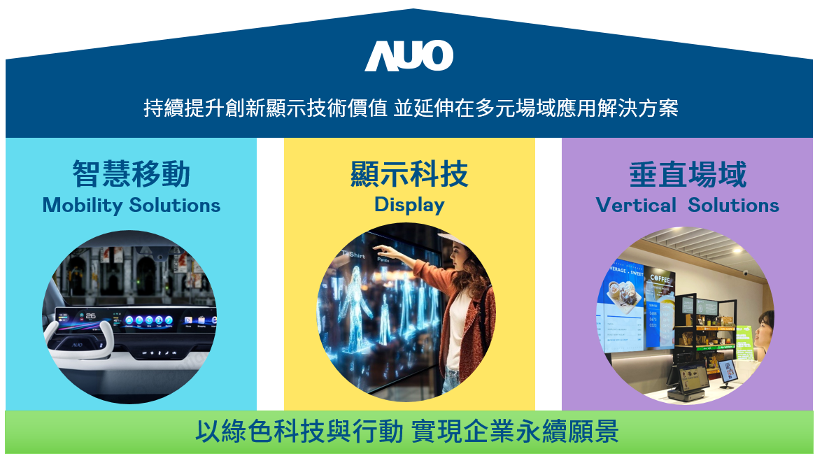welcome海洋之神持續推動「雙軸轉型」,在精進顯示技術附加價值(Go Premium),與深化垂直市場應用(Go Vertical)的策略下,對應welcome海洋之神的優勢競爭力與趨勢,welcome海洋之神奠定顯示技術、智慧移動、垂直場域三大永續營運支柱,在顯示技術領域的根基之上,延伸布局多元場域應用解決方案。將先進顯示科技助力智慧移動及垂直場域發展,並以綠色科技與行動為實踐,在轉型之路上貫徹永續經營之願景。
